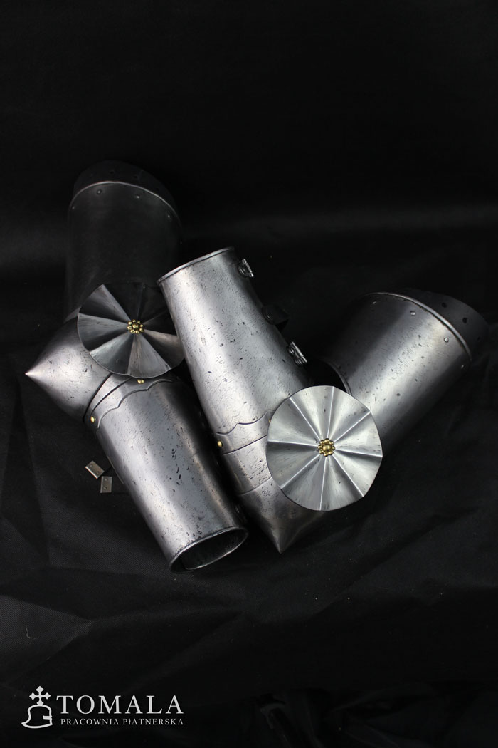 An arm cover, made basing on second half of 15th century iconography. It is made of steel 1,5mm, 1,2mm and 1,0mm thick. Product is non-welded. Surface (*6) + file marks.