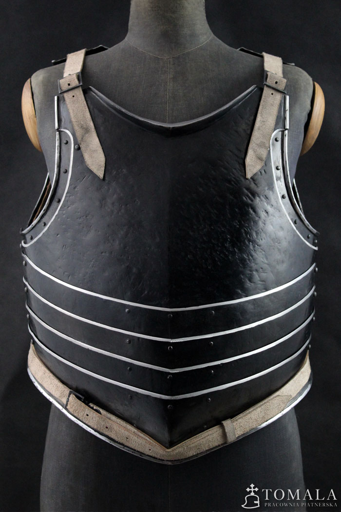 Cuirass, 17th century, based on preserved originals. It is made of 2,0mm and 1,5mm thick steel. Surface is hammered and blackened with a beeswax (*5). Product is not welded.
