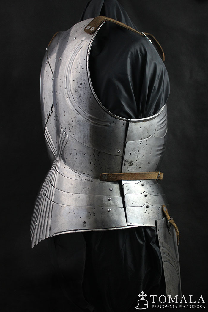 Breastplate and backplate from second half of 15th century. Made of 1,5mm 1,2mm and 1,0mm steel. Surface is hammered, sanded, hammer marks left (*6) + file marks. Product is not welded.