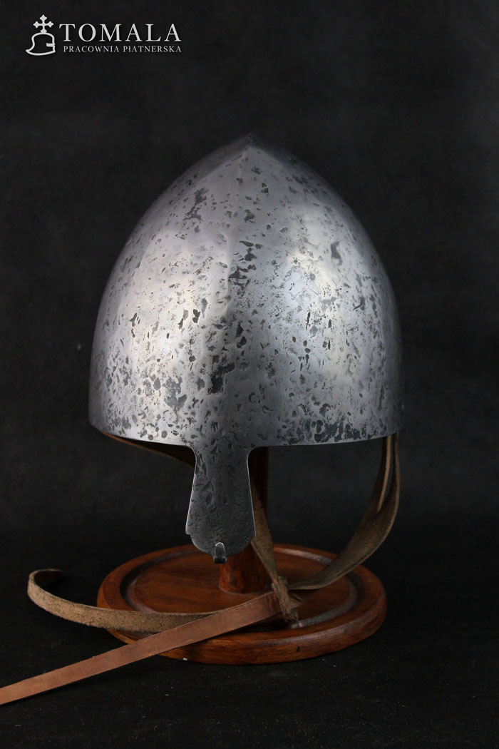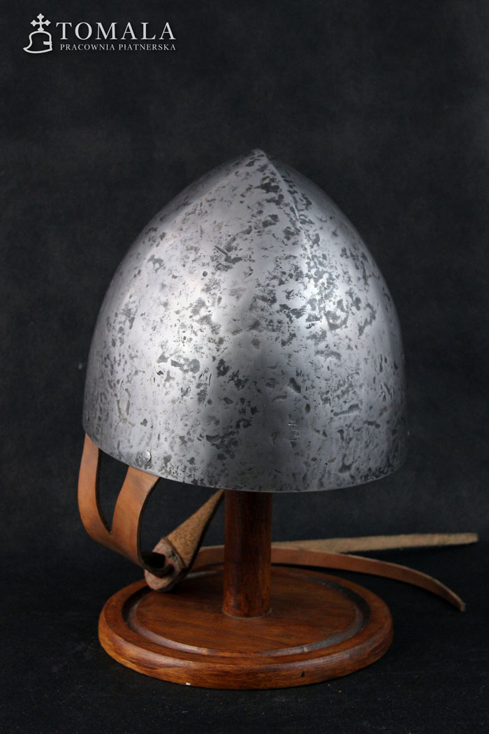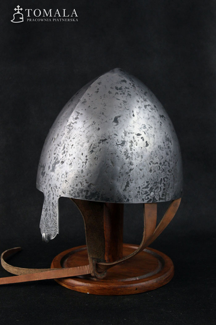 Norman helmet 10-13th century. It is made of one piece of steel, 2,5mm thick. Product is not welded. Surface is hammered, lightly sanded, hammer marks left (*7).