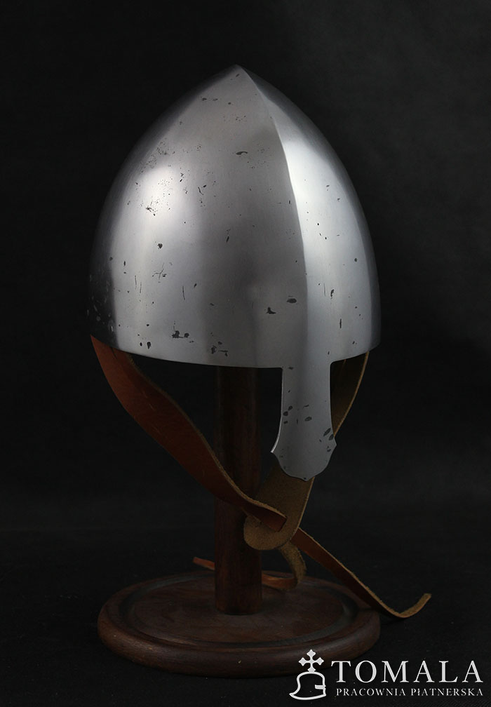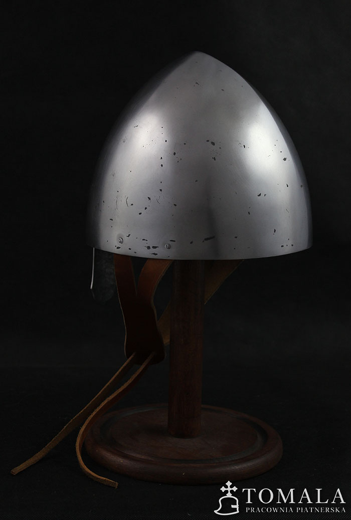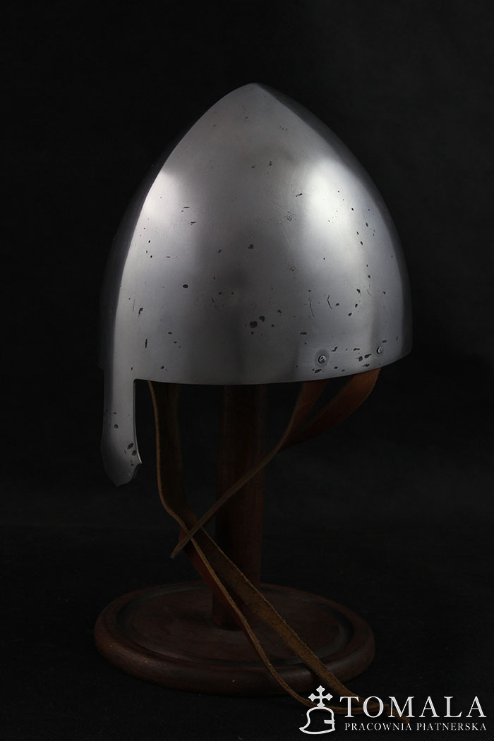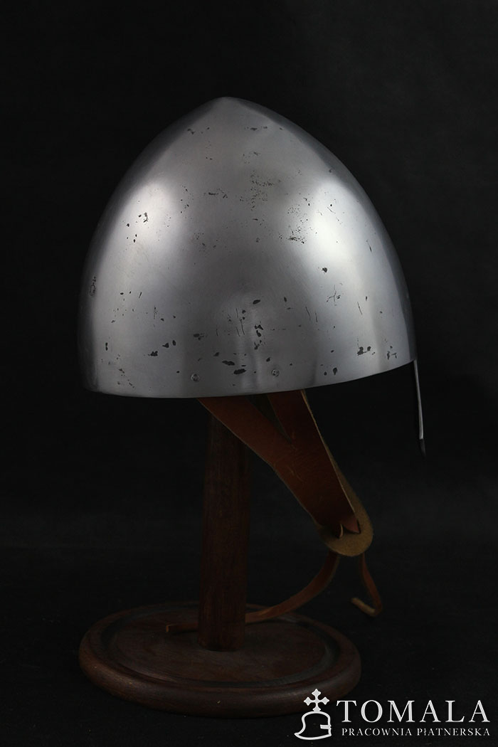 Norman helmet, 10-13th century. It is made of one piece of steel 2,5mm thick. Product is not welded. Surface is hammered, sanded, hammer marks left (*6).