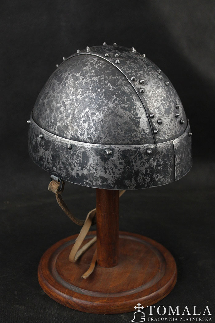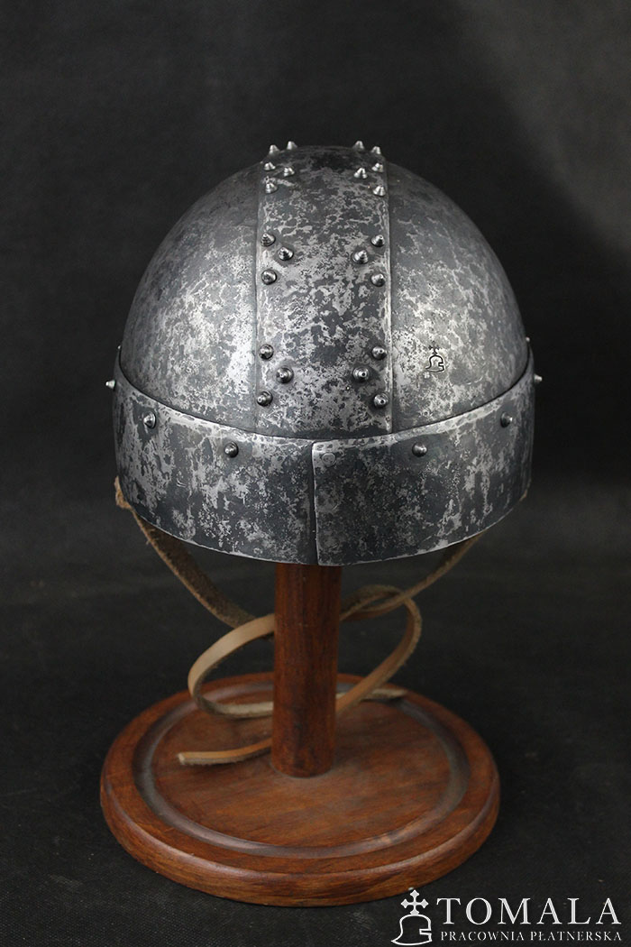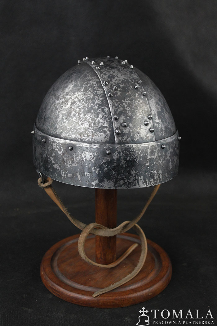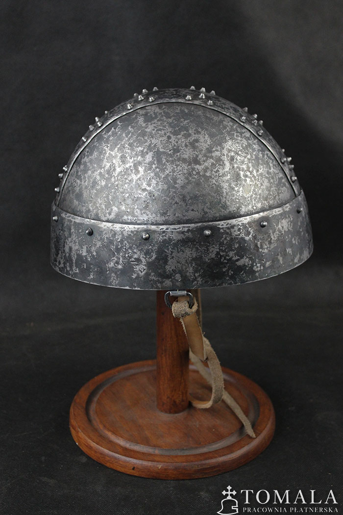 Early-medieval helmet. Rivets in shape of little spikes. Used material is 2,0mm and 1,5mm thick. Product is non-welded. Hammered surface (*4).