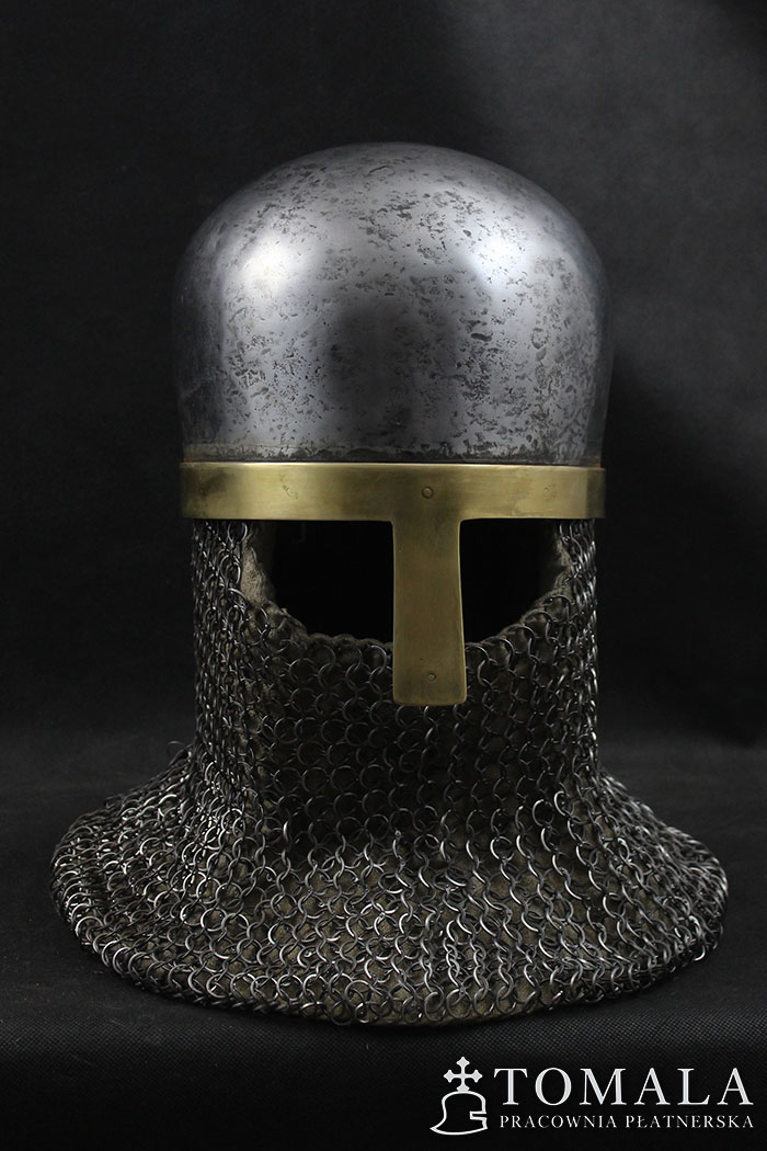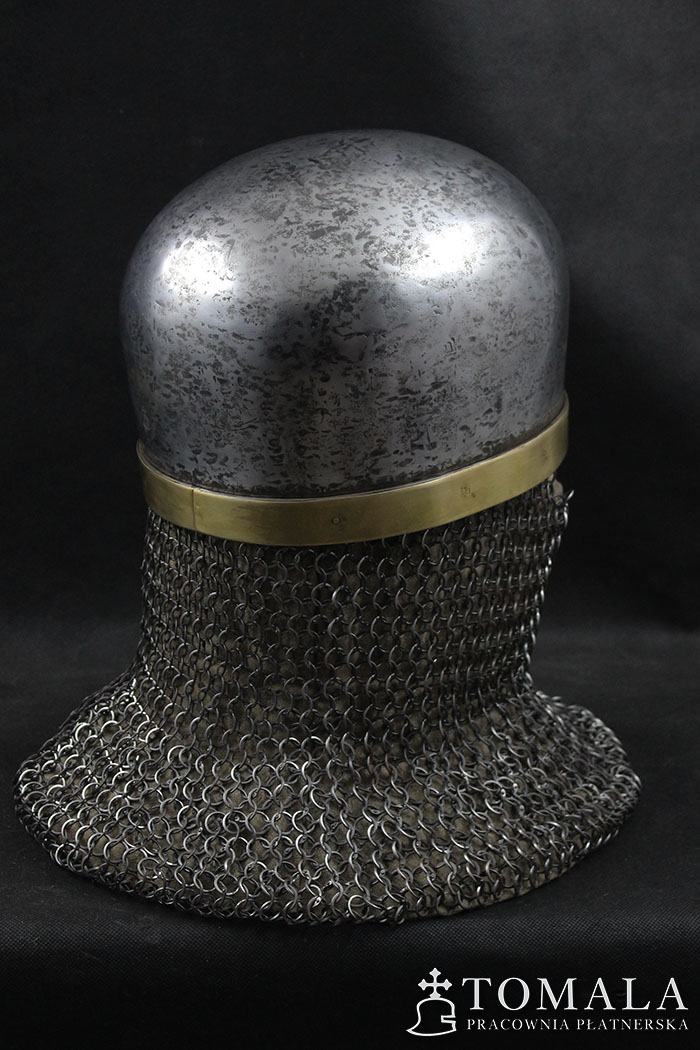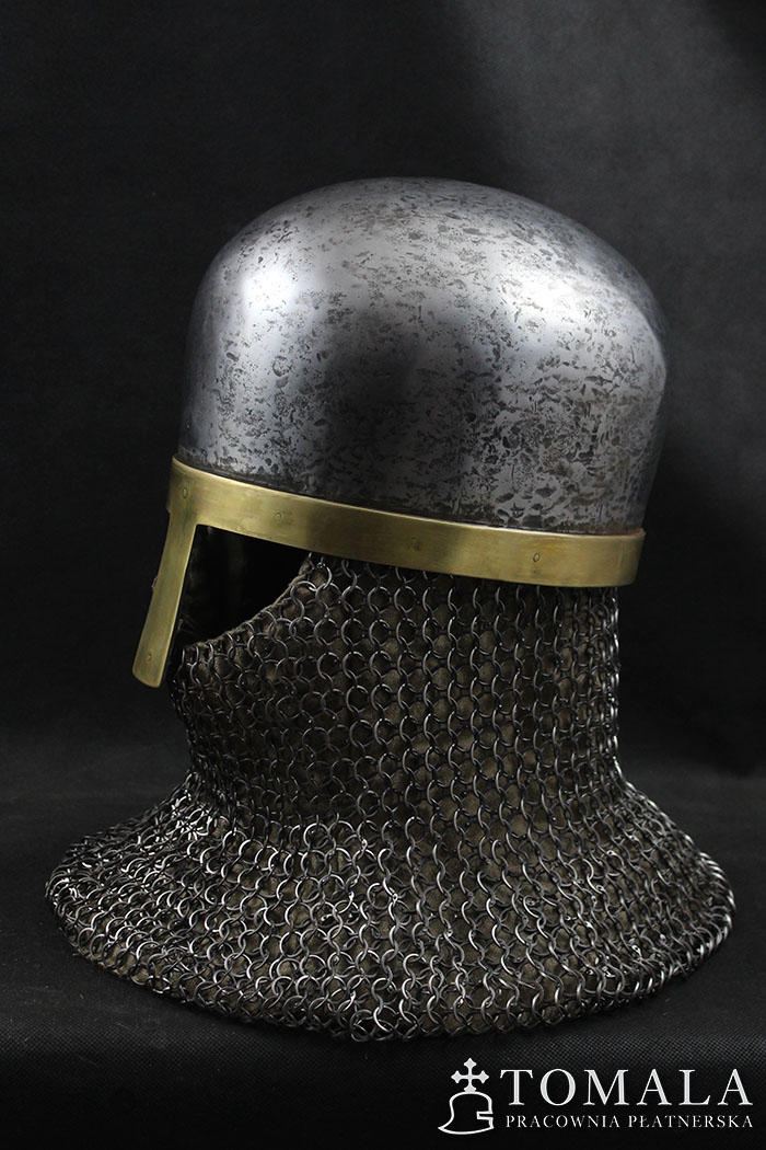 Norman helmet, 12th century. Skull is made of one piece of steel 2,0mm thick. Product is not welded. Hammered surface (*4).