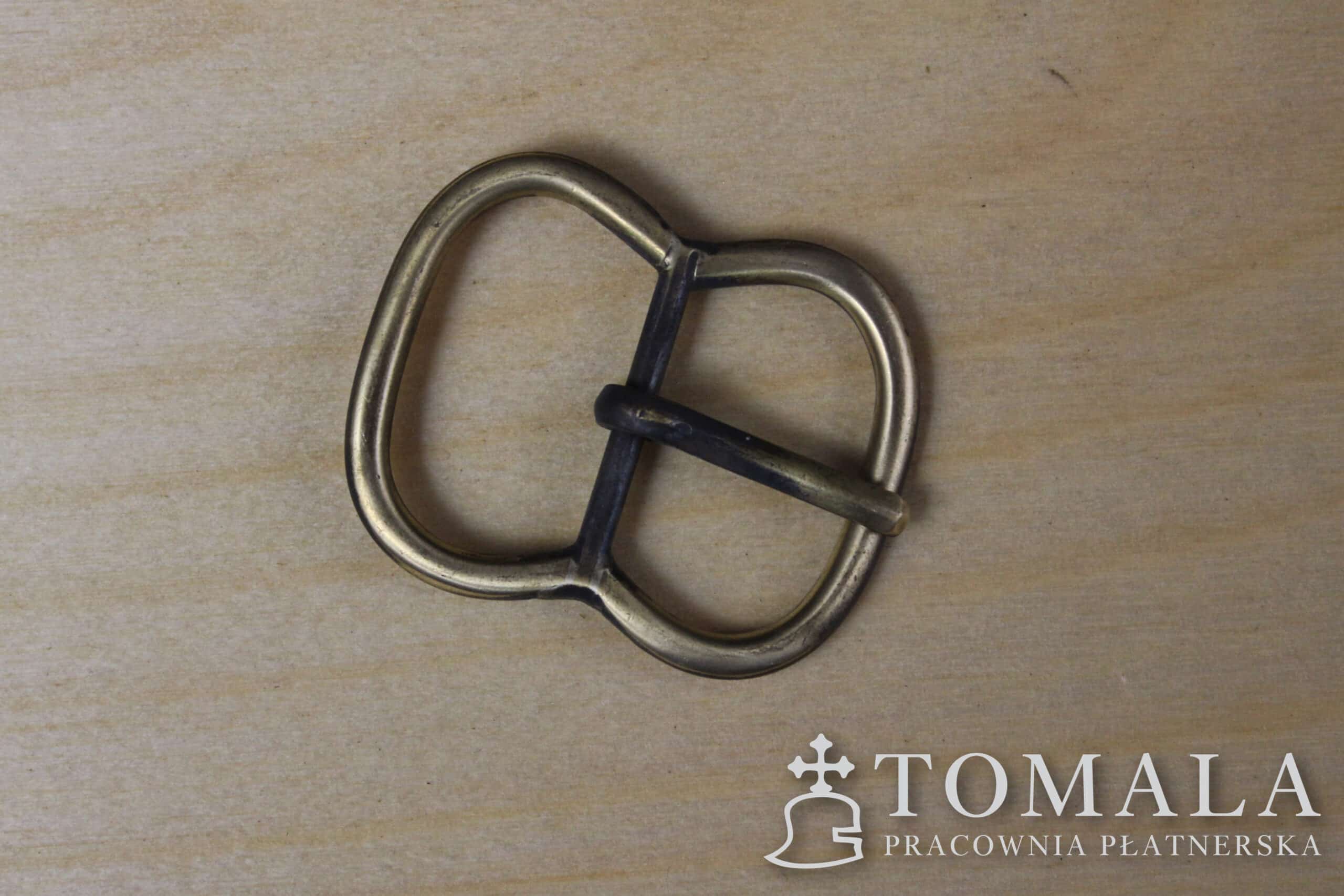 Masywna mosiężna klamerka dwudzielna. Pasuje do paska 22-23mm.