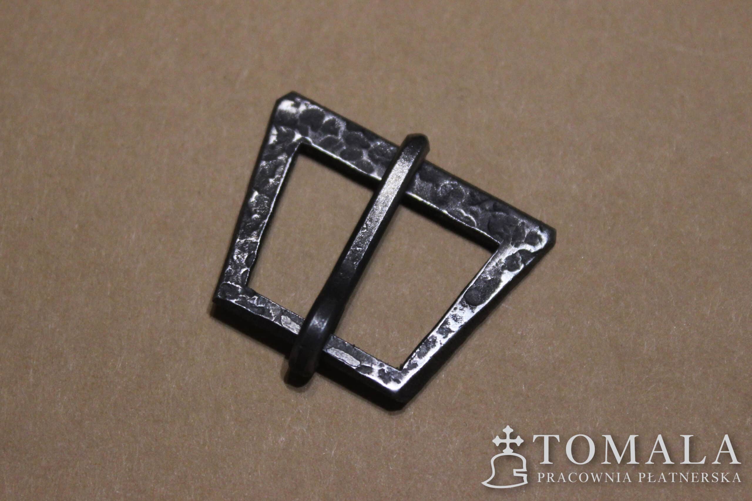 Ręcznie robiona klamerka stalowa. Szerokość w najwęższym miejscu (przy języku) 16mm, w najszerszym 20mm. Grubość każdej klamerki mieści się w przedziale 2.0mm.