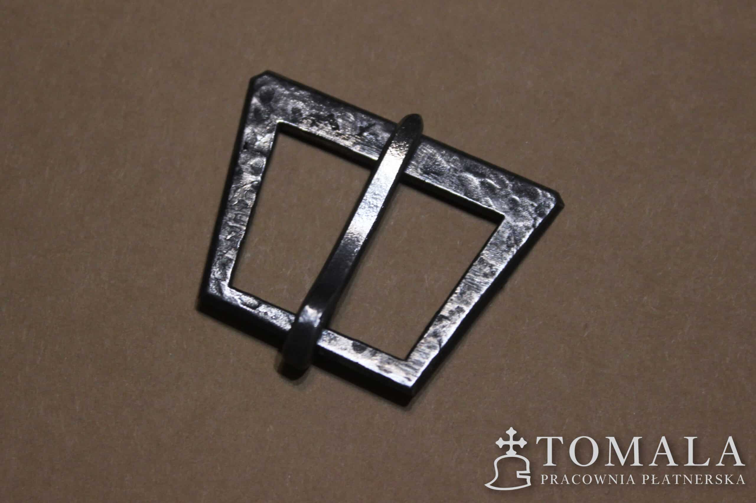 Ręcznie robiona klamerka stalowa. Szerokość w najwęższym miejscu (przy języku) 20mm, w najszerszym 25mm. Grubość każdej klamerki mieści się w przedziale 2.0mm.