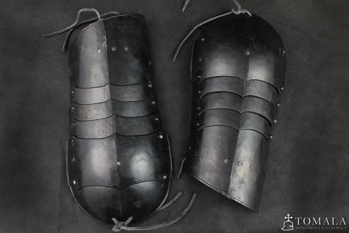Naramienniki wykonane na podstawie zachowanego zabytku z drugiej połowy XV wieku. Blacha 1,2mm. Produkt nie jest spawany. Powierzchnia kuta, czerniona woskiem pszczelim (*5).