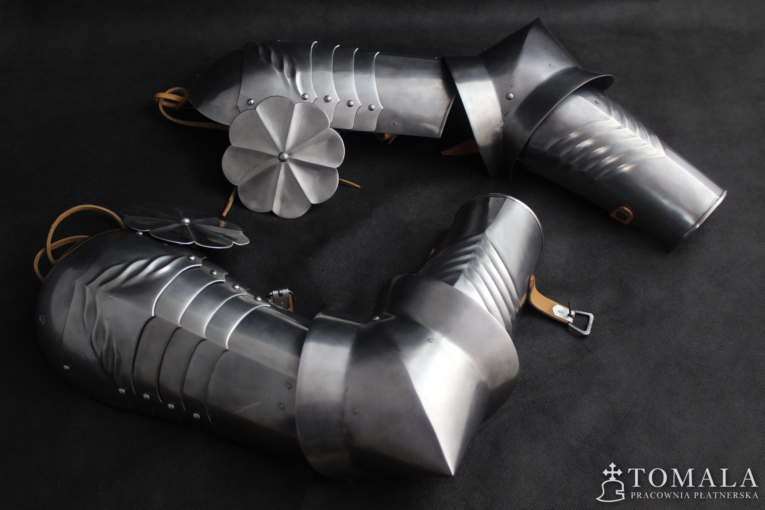 Trzyczęściowa osłona ręki. Druga połowa XV wieku. Wykonana z blachy 1,5mm oraz 1,2mm. Całość jest kuta, a następnie szlifowana i ręcznie polerowana (*2). Produkt nie jest spawany.