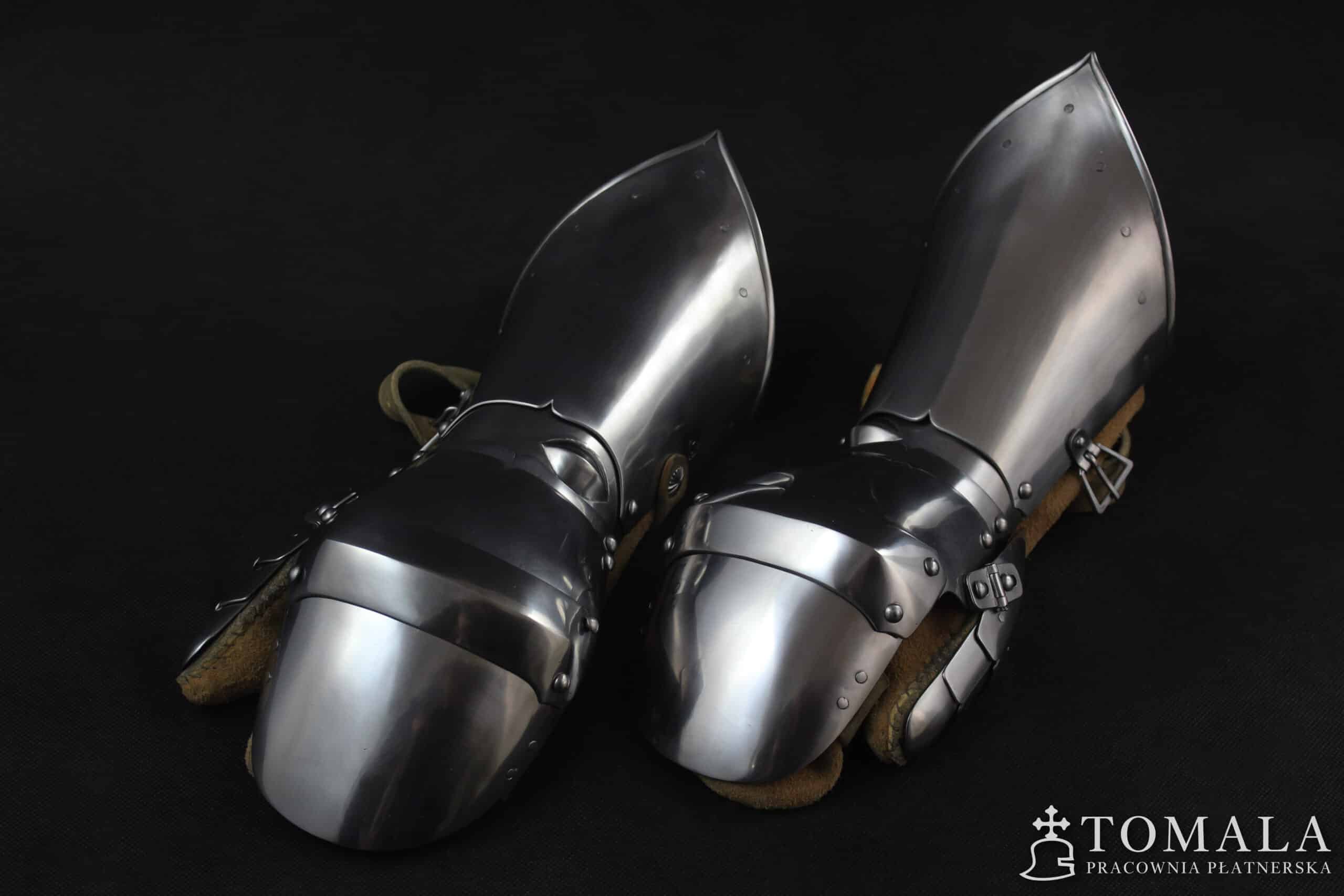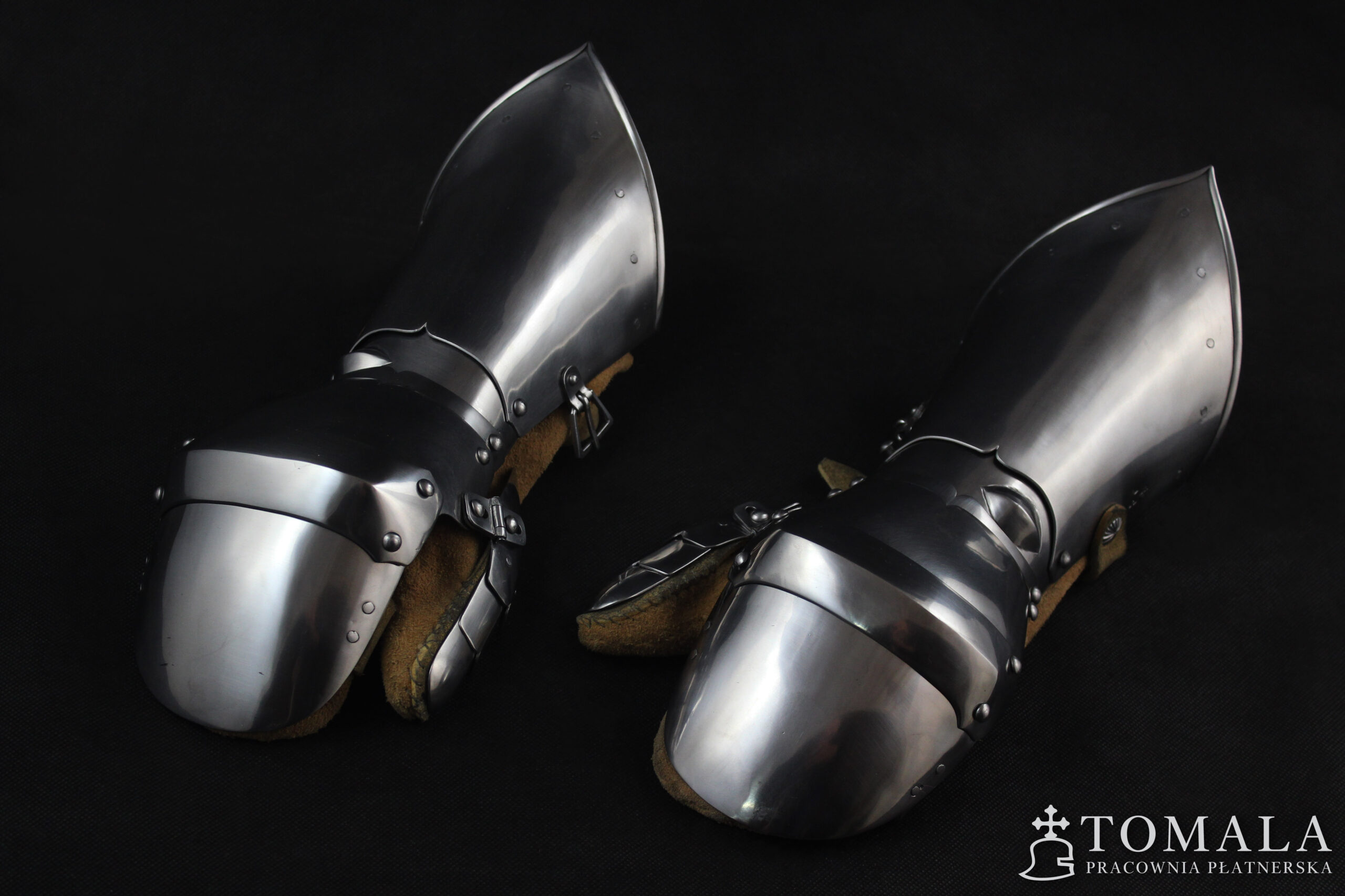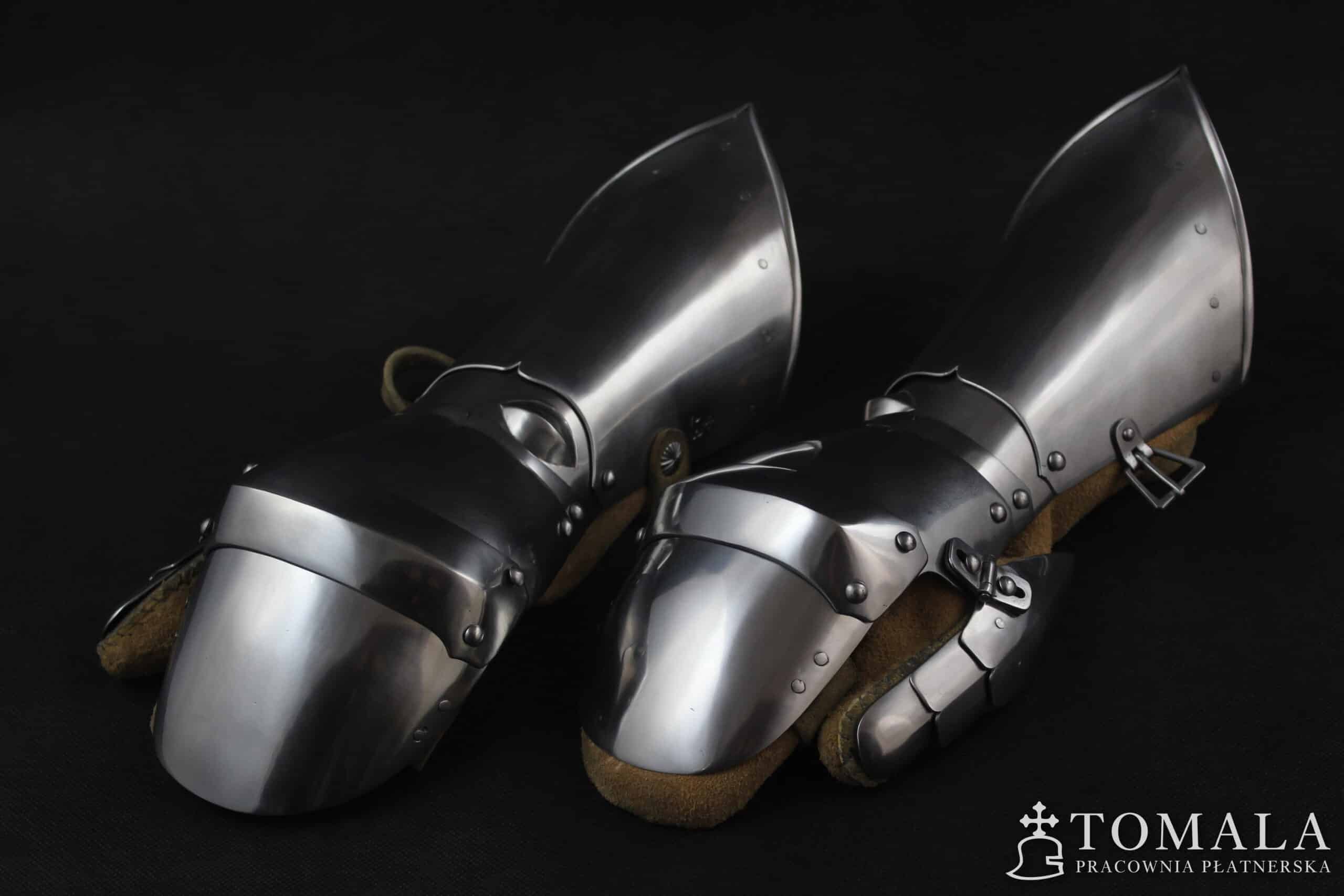 Rękawice typu mitynki, wykonane na podstawie zabytku w znajdującego się w muzeum w Leeds (Royal Armouries w Leeds), datowane na ok. 1490r. W zachowanym oryginale nie zachował się kciuk, został oderwany. Blacha 1mm oraz 1,5mm. Całość jest kuta, a następnie szlifowana i ręcznie polerowana (*2). Produkt nie jest spawany.